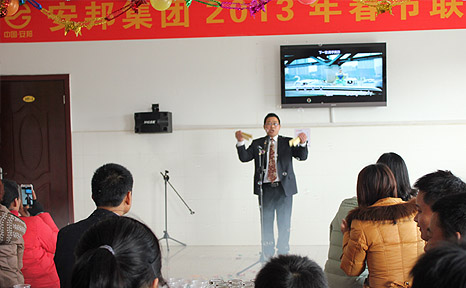 “清歌妙語辭舊歲,炫彩華音迎新春”。2月3日下午,成功舉辦了安邦2013年春節聯歡晚會。安邦全體成員歡聚一堂,暢所欲言,舉杯同樂,共同分享這一年來的收獲與感動。
