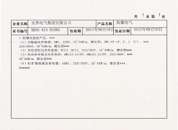 除了這兩種,還有自限溫系列的防爆產品合作證,這里就不一一例舉出來,您需要了解的話,可以直接瀏覽網站的“榮譽資質”板塊。另外,提醒廣大的客戶,伴熱帶廠家很多,但是如何識別是否是正規的廠家,您可以讓對方提供一些資質,如果不放心,您也可以去相關的認證網站查詢。